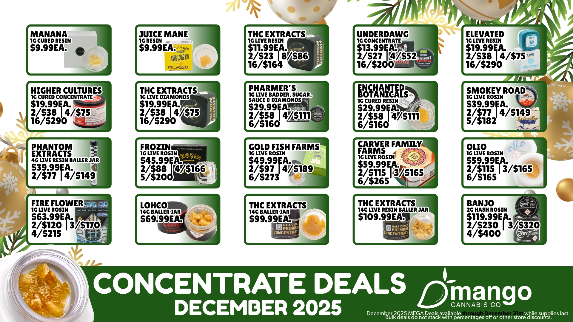 31 Days of Mango Deals available from 121-12/31. Offers are available while supplies last, bulk deals and percentages off fo not stack with other store discounts, prices shown do not indicate final sales tax