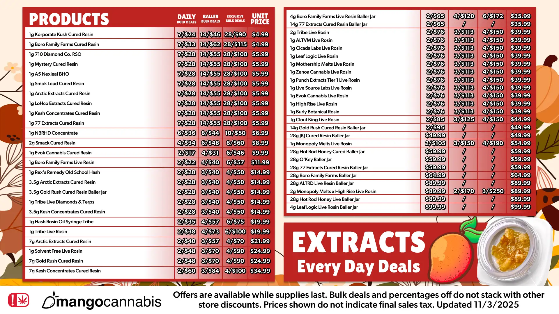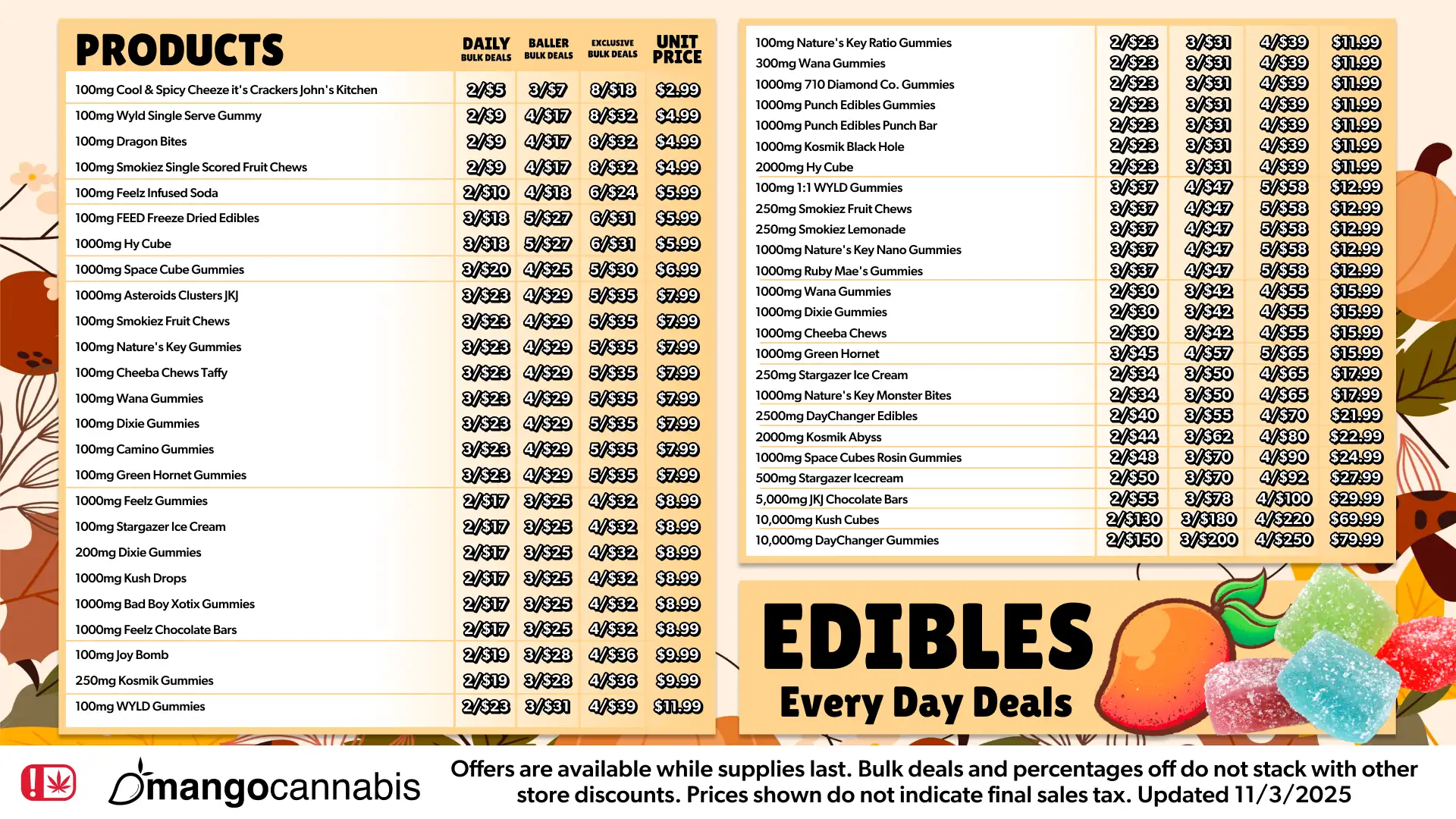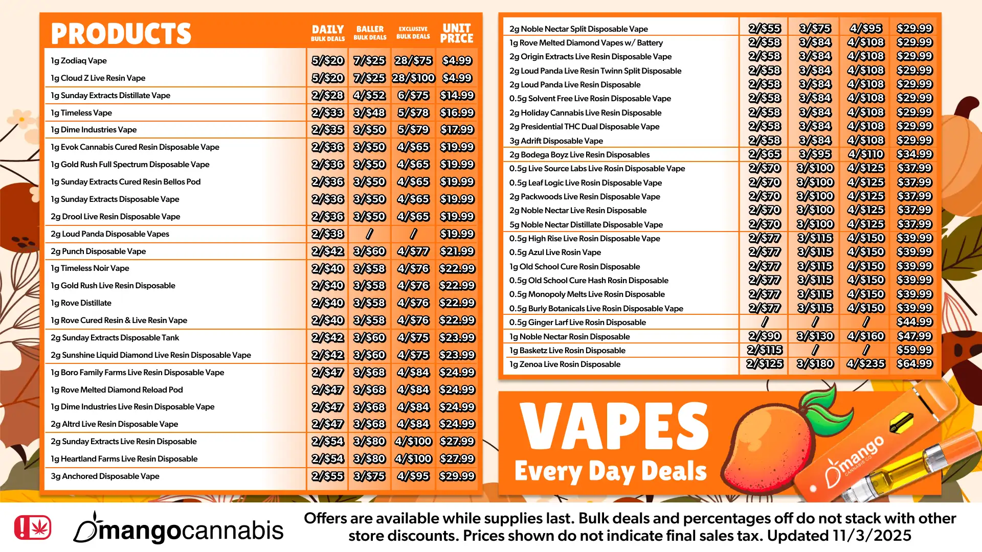 Mango Madness Deals are offered while supplies last. Deals and percentages off do not stack with other in-store discounts. Prices shown do not indicate final sales tax.