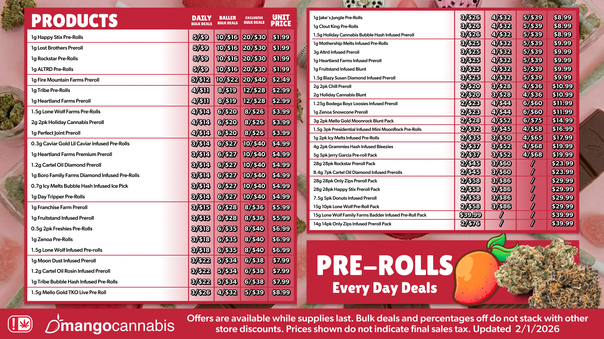 Offers are available while supplies last, bulk deals and percentages off do not stack with other store discounts, prices shown do not indicate final sales tax
